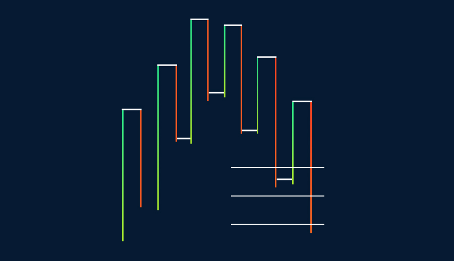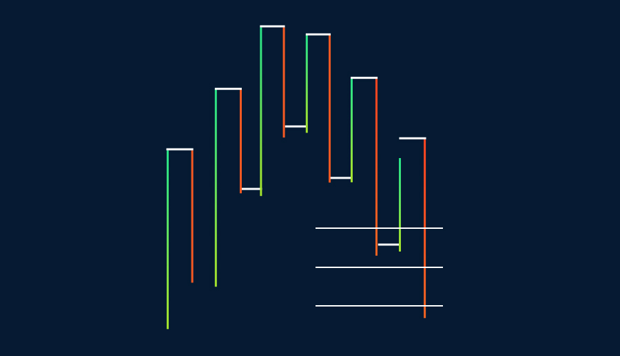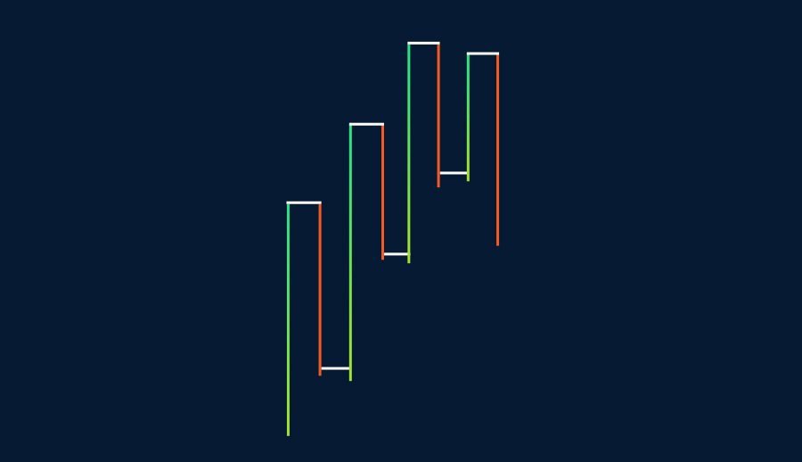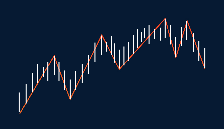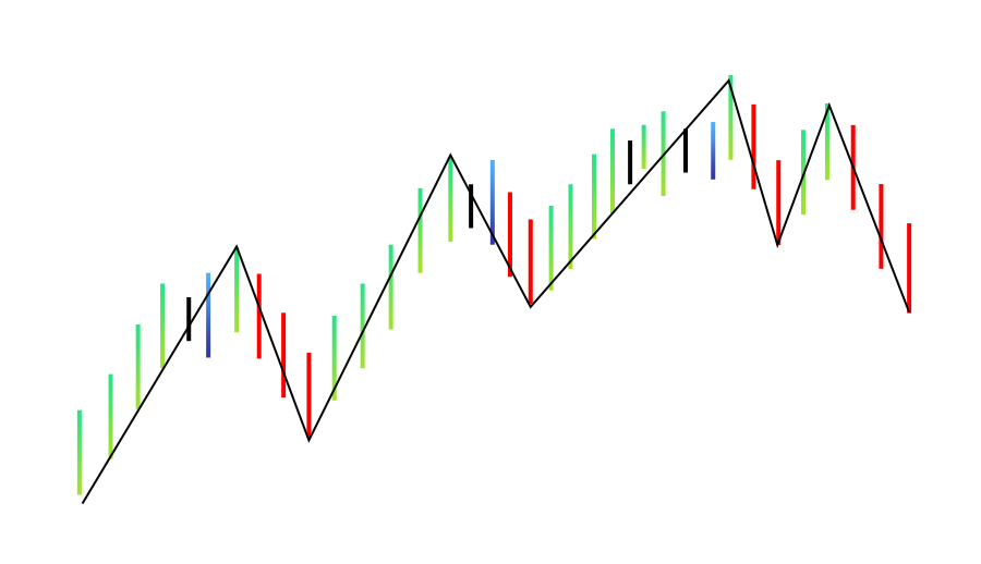 下一步是通过删除所有不是转折点的K线/条形,来移除时间因素。毕竟,我们真正感兴趣的是市场的走向。